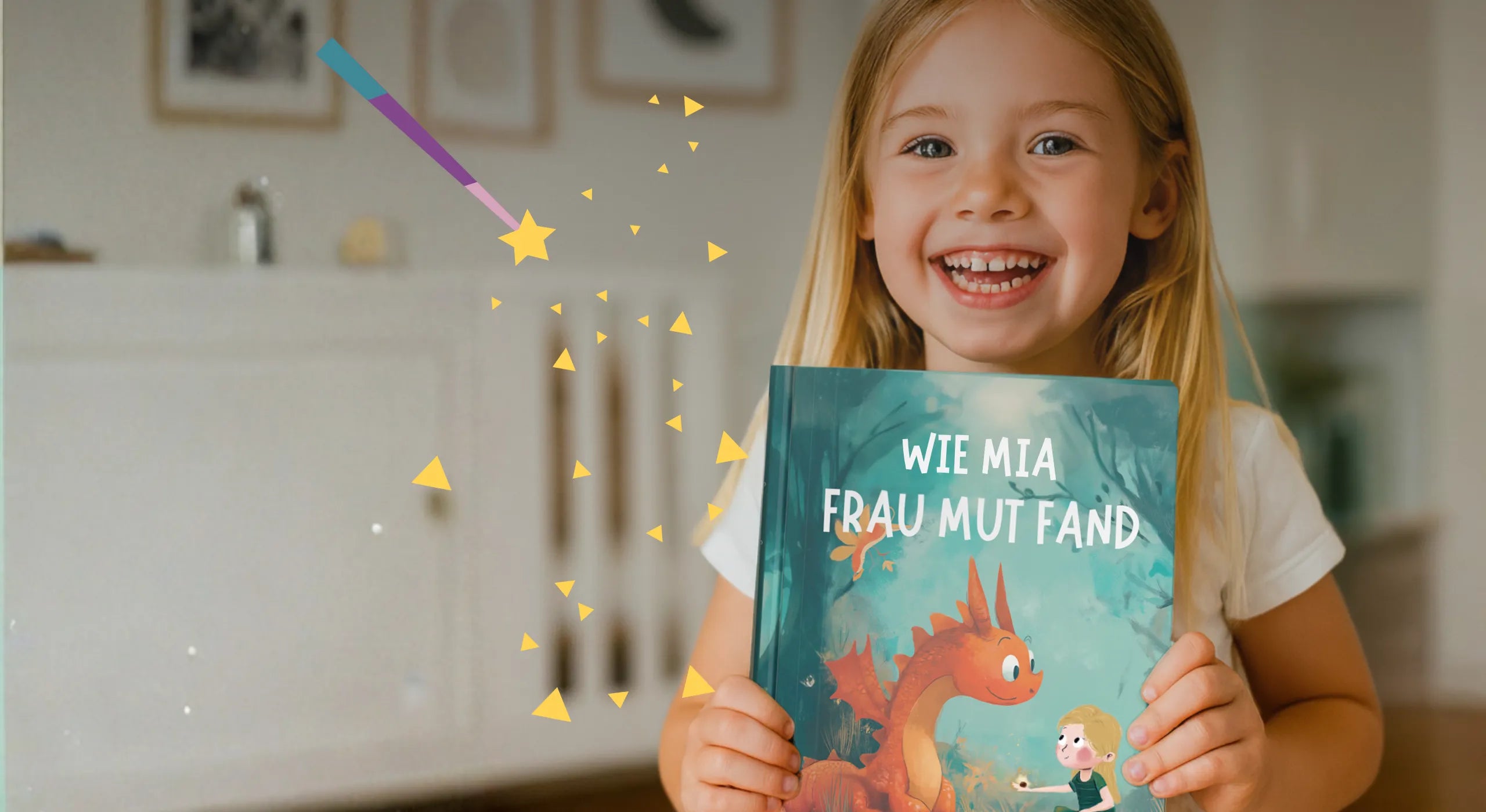In den personalisierten Geschichten kannst du jede Menge Details anpassen: Den Namen, das Aussehen, das Zuhause, die Hobbys, das Lieblingsessen und noch so viel mehr! Gestalte jetzt dein ganz persönliches Buch für magische Lesemomente. Und so geht’s: Geschichte auswählen, Details anpassen und schon wirst du zum Helden in deinem eigenen Kinderbuch!